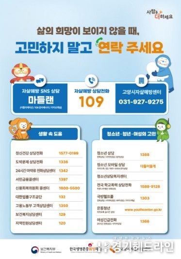 [경기헤드라인=김홍량 기자] 고양특례시 고양시자살예방센터는 자살 예방을 위한 집중 관리와 홍보 활동을 본격 추진한다고 7일 밝혔다.