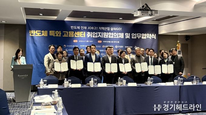 이에 도는 7일 수원 라마다호텔에서 경기지방고용노동청 주관으로 ‘반도체 특화고용센터 업무협약 체결식 및 협의회’를 열고, 인력양성과 채용 연계를 위해 협력하기로 했다.