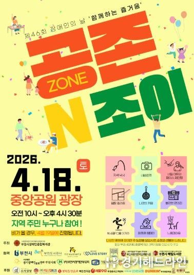 [경기헤드라인=문수철 기자] 부천시장애인종합복지관은 오는 4월 18일 중앙공원 광장에서 제46회 장애인의 날 기념행사 ‘공존N조이’를 개최한다. 이번 행사는 장애인과 지역 주민이 다양한 체험과 참여 프로그램을 통해 자연스럽게 어울리며 공존의 가치를 공유하는 지역문화 축제로 기획됐다.