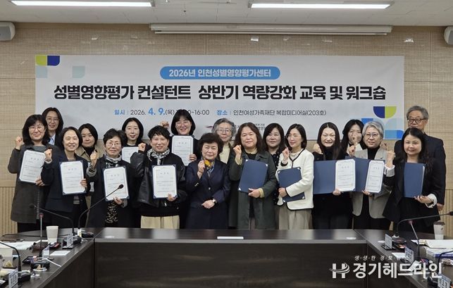 [경기헤드라인=문수철 기자] 인천여성가족재단 성평등가족부 지정 인천성별영향평가센터는 4월 9일 재단 내 복합미디어실에서 ‘2026년 상반기 인천광역시 성별영향평가 컨설턴트 역량강화 교육 및 워크숍’을 개최했다.