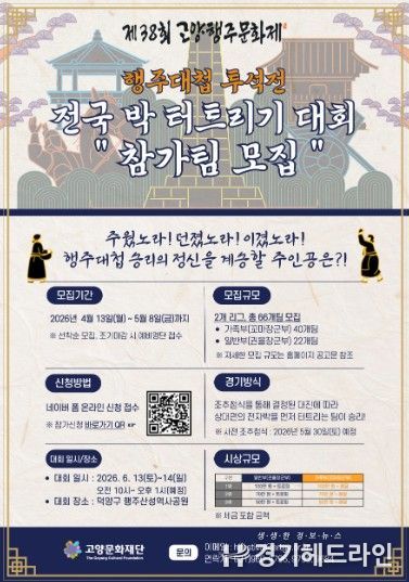 [경기헤드라인=김홍량 기자] 고양문화재단은 오는 6월 열릴 고양행주문화제의 대표 프로그램 중 하나인 행주대첩 투석전 ‘전국 박 터트리기 대회’의 참가팀을 오는 5월 8일까지 모집한다.