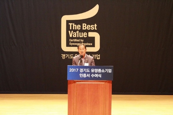 이날 행사는 경기도 유망중소기업으로 선정된 기업에 대한 인증서 수여를 통해 중소기업인의 경영의식 고취 및 사기진작을 도모하려는 취지로 마련됐으며 올해에는 204개 기업이 인증을 받은 것으로 알려졌다.