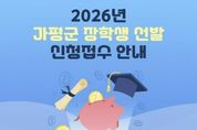 [경기헤드라인=문수철 기자] 가평군이 지역 학생들의 균등한 교육 기회를 보장하고 우수 인재를 육성하기 위해 2026년도 장학생 선발에 나선다. 군은 올해 중학생 17명, 고등학생 76명, 대학생 107명 등 총 200명을 장학생으로 선발할 계획이다. 장학금은 학생들의 다양한 상황과 역량을 고려해 △으뜸 △특기 △복지 △환경 △보금자리 등 5개 분야로 나눠 선발한다. 신청 자격은 공고일(3월 3일) 기준 가평군에 3년 이상 거주한 군민 또는 그 자녀인 중‧고등학생과 대학생이다. 신청을 희망하는 학생은 공고문을 참고해 5개 분야 가운데 하나를 선택한 뒤 신청서와 관련 구비서류를 준비해 거주지 관할 읍면사무소에 제출하면 된다. 접수 기간은 3월 4일부터 26일 오후 6시까지다. 자세한 사항은 가평군청 홈페이지 고시공고를 통해 확인할 수 있다.