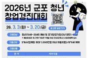 [경기헤드라인=문수철 기자] 군포산업진흥원은 지역 내 유망 청년 창업가를 발굴하고 혁신 아이디어의 성공적인 사업화를 지원하기 위해 2026년 군포 청년 창업경진대회 지원사업 참가자를 2026년 3월 3일부터 3월 20일까지 모집한다고 밝혔다. 이번 사업은 창의적인 아이디어와 기술력을 보유한 청년 예비창업자 및 초기 창업기업을 대상으로 우수 창업 아이템을 발굴하고, 단계별 맞춤 지원을 통해 안정적인 시장 진입과 지속 가능한 성장을 돕기 위해 마련됐다. 특히 경진대회를 통해 선발된 우수팀에게는 최대 1천만 원의 사업화 지원금과 전문가 멘토링 등 실질적인 성장 지원 프로그램이 제공될 예정이다. 또한 향후 창업보육센터 입주 신청 시 우대 혜택을 부여해 후속 성장까지 연계 지원할 계획이다. 군포산업진흥원은 이번 사업을 통해 청년 창업 활성화 기반을 더욱 강화하고, 지역 내 창업 생태계 선순환 구조를 구축해 나간다는 방침이다. 아울러 우수 창업기업이 관내에 안정적으로 정착해 지속적으로 성장할 수 있도록 맞춤형 지원을 확대해 나갈 예정이다. 유병직 원장은 “청년 창업은 지역 경제의 미래 성장 동력”이라며, “