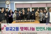 [경기헤드라인=문수철 기자] 광교2동 지역사회보장협의체는 2025년 6월부터 12월까지 관내 독거노인 복지사각지대 대상자를 위한 '행복나눔 반찬나눔'사업을 운영하여 성공적으로 마무리했다. '행복나눔 반찬나눔'은 관내 어려운 이웃에게 정기적으로 직접 반찬을 전달하며 따뜻한 정을 나누는 복지사업으로, 지역사회보장협의체 위원을 비롯한 자원봉사자들이 반찬을 구매하여 독거노인들에게 직접 방문하여 전달하는 방식으로 운영됐다. 이번 사업은 매월 1회 진행되며 기초생활수급자 독거노인 등을 우선 선정해서 7개월동안 진행했고, 반찬 전달 시 안부 확인을 병행하는 정서적 돌봄으로 이웃사랑 나눔을 실천했다. 광교2동 지역사회보장협의체 이종금 위원장은 “단순히 반찬을 나누는 것을 넘어서 지역주민에게 이웃사랑 나눔을 실천했고 대상자들도 만족하여 의미있는 사업이었다”고 밝혔다. 또한, 박남숙 광교2동장은 “올 한해 지역사회보장협의체 위원님들과 봉사자 분들의 따뜻한 손길로 민·관이 함께하는 나눔 복지를 실현했다”고 말했다. 광교2동은 자원봉사자 모집과 반찬 기부 참여 등을 지속적으로 홍보하며, 내년에도 다양한 대상