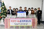 [경기헤드라인=문수철 기자] 지난 10일, 수원시 영통구 매여울회에서 관내 어려운 이웃을 돕기 위해 컵라면 200박스를 기부했다. 수원시 영통구 매탄동 소재 공인중개사 모임인 매여울회는 매년 꾸준히 지역사회의 어려운 이웃을 위해 물품을 지원하며 따뜻한 나눔을 실천하고 있다. 이날 전달된 물품은 기부자의 뜻에 따라 관내 도움이 필요한 취약계층 세대에게 배부될 예정이다. 매여울회 관계자는 "한 해를 따뜻한 나눔 활동으로 마무리할 수 있어 매우 뜻깊다”며 “추운 겨울, 컵라면의 온기처럼 어려운 이웃들에게 조금이나마 도움이 되기를 바란다”고 전했다. 장수석 영통구청장은 "지속적인 나눔을 실천해 주시는 분들의 마음에 진심으로 감사드린다”며 “기부해 주신 물품은 도움이 필요한 복지 사각지대의 이웃에게 잘 전달하겠다”고 말했다.