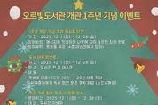 [경기헤드라인=김윤종 기자] 동두천시 오르빛도서관이 개관 1주년을 맞아 12월 한 달간 다채로운 문화행사를 진행한다. 오르빛도서관은 지난해 12월 개관 이후 시민들의 높은 관심 속에 지역 대표 독서문화 공간으로 자리매김해왔다. 이번 행사는 지역 주민과 함께 도서관의 성장을 기념하고, 책과 문화가 어우러지는 복합문화공간으로서의 역할을 강화하기 위해 마련됐다. 우선 12월 6일에는 1주년 기념 특별행사가 열린다. '제이시아'와 함께하는 클래식 콘서트, '김슬기 작가 초청 1인 어린이 인형극', 가족 참여형 '크리스마스 무드등 만들기 체험' 등이 진행되며, 카카오톡 친구 추가 이벤트와 떡 나눔 행사 등 시민이 함께 즐길 수 있는 프로그램도 준비된다. 이어 12월 9일에는 '김민식 작가 초청 특강'이 예정되어 있다. 특강은 도서관 4층 어린이자료실에서 시민 100명을 대상으로 진행되며, 시민의 문화 감수성을 높이고 독서문화 저변을 확대하는 계기가 될 것으로 기대된다. 이 밖에도 이용자 설문조사, ‘나만의 서재 꾸미기’ 프로그램, 축하 메시지 게시, 도서 대출 이벤트, 1주년 기념 축하영상 상영 및 원화 전