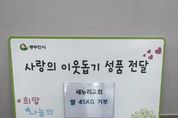 [경기헤드라인=김윤종 기자] 동두천시 불현동 새누리교회는 11월 3일 불현동 행정복지센터에 백미 45kg을 전달했다고 밝혔다. 새누리교회는 불현동에 위치한 개신교 교단으로, 매년 나눔을 실천하며 지역사회에 따뜻한 온정을 나누고 있다. 민경엽 담임목사는 “지역의 소외된 이웃들이 추운 겨울 따뜻한 연말을 보낼 수 있길 바란다”며 “작은 정성이지만 도움이 됐으면 좋겠다”라고 전했다. 김영미 불현동장은 “지역사회를 위해 꾸준히 나눔을 실천해 주신 데 감사드리며, 후원해 주신 백미는 도움이 필요한 취약계층에 소중히 전달하겠다”라고 말했다.