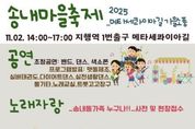 [경기헤드라인=김윤종 기자] 동두천시 송내동 주민자치위원회는 오는 11월 2일 오후 2시부터 지행역 1번 출구 메타세콰이아길에서 ‘2025 송내마을축제’를 개최한다고 밝혔다. 이번 축제는 주민자치센터 프로그램 수강생을 비롯해 지역 학교, 동아리, 학원 등 다양한 주민이 참여해 주민자치 활성화와 지역 문화·예술 교류의 장을 마련하고자 기획됐다. 행사 당일에는 송내동 주민 노래자랑, 주민자치 프로그램 발표회·전시회, 초청공연, 체험부스, 벼룩시장, 먹거리 마당 등 다채로운 프로그램이 진행된다. 특히 주민이 직접 참여하는 노래자랑과 맷돌체조, 트롯고고장구, 실버태권도 등 7개 팀의 프로그램 발표회가 마련돼, 지역 주민들이 그동안 갈고닦은 실력을 선보일 예정이다. 또한 도자기 만들기, 팽이 꾸미기, 만년도장 만들기 등 가족 단위로 즐길 수 있는 체험부스도 함께 운영된다. 이번 축제는 송내동 주민의 화합과 자긍심을 높이는 것은 물론, 주민자치센터 프로그램 홍보와 신규 수강생 유치에도 도움이 될 것으로 기대된다. 아울러 지역 소상공인과 시민이 함께 참여하는 벼룩시장도 열려 지역경제 활성화에도 기여할 전망이다.