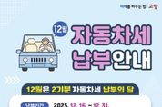 [경기헤드라인=김홍량 기자] 고양특례시 일산동구는 2025년 제2기분 자동차세 총 69,572건, 약 115억 원을 부과하고, 지난 12일 고지서를 발송했다고 밝혔다. 자동차세 납부 대상은 2025년 12월 1일 기준 차량 소유자(자동차·이륜차·기계 장비 등)로, 차량 운행 여부와 관계없이 자동차등록원부상 명의자에게 부과된다. 자동차세는 후납 방식으로 올해 7월 1일부터 12월 31일까지의 자동차 보유기간에 따라 일할 계산돼 부과된다. 납부 기한은 12월 16일부터 31일까지이며 위택스, 지로, ARS(142211), 전국 은행 ATM(신용카드·현금카드·통장), 가상계좌번호 및 지방세입 계좌 등 다양한 방법으로 편리하게 납부 가능하다. 구 관계자는 “자동차세 납세 의무자는 체납으로 인한 불이익을 받지 않도록 기한 내 납부해 주길 바란다”고 말했다.