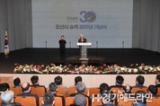 ▲ 2일 오산시가 오산문화예술회관 대공연장에서 시 승격 30주년을 기념식을 가졌다.(사진제공=오산시) [경기헤드라인=문수철 기자] 오산시는 지난 2일 오산문화예술회관 대공연장에서 시 승격 30주년을 기념하는 기념식과 이를 시민들과 함께 축하하기 위한 축하콘서트를 개최했다. 시는 1989년 1월 1일에 오산읍에서 오산시로 승격됐다. 당시 오산시의 인구는 5만 7천명, 예산은 154억의 규모였으나, 30년이 지난 2019년도 서른 살의 청년도시 오산의 인구는 23만명, 시 예산은 6,450억원 규모로 큰 성장을 이루어 왔다. 이날 기념식 및 축하콘서트는 오산시가 지난 30년 동안 눈부신 발전으로 전국 최고 수준의 교육도시, 선진 복지 도시로 성장한 오산시의 서른 번째 생일을 시민들과 함께 축하하기 위해 마련됐으며, 오산시 관내 각계각층의 주요 인사 및 시민 등 800여명이 함께 오산시의 과거와 미래를 함께 공유하는 시간을 가졌다. 특히 이날 기념식에서는 오산시 시 승격 30주년 엠블럼 소개, 30주년 특별 영상 등이 상영되었으며, 축하콘서트에서는 세계적인 연주그룹 ‘올라! 비올라 사운드’, 팝페라 가수‘손준호, 김소현부부’와 단국대학교 소프라노 박혜진 교수의 품
