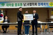 [경기헤드라인=정현수 기자] 이천시 증포동 새마을남녀협의회는 12월 26일 증포동 저소득 사회초년생을 위한 운전면허 취득(‘뛰뛰빵빵’) 지원을 위해 성금 312만 원을 증포동행정복지센터에 기탁했다. 증포동 새마을남녀협의회 표동근, 박진숙 회장은 “수능시험이 끝난 고3 학생들이 여유 시간을 이용하여 운전면허를 많이 준비하는 시기인데, 저소득층 자녀들이 소외되지 않고 유용한 자격증을 딸 수 있는 기회를 주고자 회원들이 성금을 모아 준비했다”라고 밝혔다. 김완규 증포동장은 “증포동 새마을남녀협의회가 친환경사업을 통해 마련해준 기탁금이 이제 사회 초년생이 될 학생들에게 실질적인 도움이 되리라 여긴다”라며 감사함을 전했다. 증포동 새마을남녀협의회는 친환경사업을 통해 매년 고3 학생들의 운전면허취득 지원을 했으며, 올해에 5년 차로 후원했다.