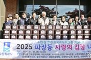 [경기헤드라인=문수철 기자] 수원시 장안구 파장동 새마을부녀회는 11일, 지역 주민들과 함께 ‘사랑의 김장 나누기’ 행사를 열고 따뜻한 정을 나눴다. 이번 행사에서 새마을부녀회는 직접 김장을 하고 정성껏 포장해 기초생활수급자, 독거노인, 취약계층 250가구에 전달했다. 정성스럽게 준비된 김치는 겨울철 이웃들의 식탁에 온기를 더해줄 예정이다. 박용희 파장동 새마을부녀회장은 “김장은 단순한 음식 장만이 아닌 정성과 마음이 담긴 겨울 준비”라며 “이웃을 생각하며 함께 담근 김치가 어려운 분들께 따뜻한 위로가 되길 바란다”고 말했다. 장인영 파장동장은 “어려운 이웃을 위해 정성껏 김장을 준비해주신 새마을부녀회와 여러 단체 및 후원해 주신 분들께 감사드리며 파장동의 사랑과 정성이 잘 전달될 수 있도록 하겠다”고 전했다. 파장동은 매년 겨울을 앞두고 김장 나눔 행사를 통해 이웃 간의 온정을 나누고 있으며 올해도 지역 주민들의 자발적인 참여와 후원으로 더욱 풍성한 나눔의 장이 마련될 것으로 기대해 본다.
