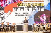 [경기헤드라인=문수철 기자] 남양주시의회는 16일 남양주체육문화센터 실내체육관에서 열린 ‘다산 정약용배 태권도 한마당대회’에 참석해 참가선수들을 격려했다. 남양주시체육회가 주최하고 남양주시태권도협회가 주관한 이번 대회는 시민 건강 증진과 생활체육 활성화를 위해 마련됐으며, 1500여명의 참가선수들이 품새, 겨루기, 격파, 태권체조, 스피드발차기 등 다양한 종목을 통해 그간 준비한 기량을 마음껏 펼치며 실력을 겨뤘다. 이날 개회식은 조성대 남양주시의회 의장을 비롯해 시의원, 주광덕 시장, 국회의원, 도의원, 강신관 남양주시태권도협회장 등 주요 인사들이 참석했으며, △개회선언 △내빈소개 △표창 및 감사패 수여 △대회사 △환영사 및 축사 △태권도 시범공연 △기념촬영 순으로 진행됐다. 조성대 의장은 축사에서 “실학의 고장 남양주에서 정약용 선생의 배움과 실천 정신이 깃든 이름으로 열린 이번 대회는 그 의미가 더욱 특별하며, 태권도야말로 예의와 질서, 존중의 정신을 배우는 훌륭한 교육”이라고 강조했다. 이어 “상대에 대한 배려와 정정당당한 승부뿐만 아니라 진정한 승리는 이기는 것보다 자신을 이겨내는데 있다는