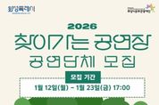 [경기헤드라인=문수철 기자] (재)화성시문화관광재단은 1월 12일부터 1월 23일까지 ‘2026 찾아가는공연장’ 참여 공연단체를 모집한다고 밝혔다. ‘찾아가는 공연장’은 화성시의 곳곳에서 다양한 장르의 공연을 제공함으로써 시민들의 일상적인 문화예술 관람을 돕기 위한 사업으로, 2009년부터 시작된 화성시문화관광재단의 대표 문화사업 중 하나다. 지난 2025년도에는 공개 모집을 통해 40개의 공연단체를 선정했으며, 문화취약계층에 방문공연, 공원 광장 거리공연 등을 통해 다양한 장르의 공연으로 화성시민과 함께했다. ‘2026 찾아가는 공연장’은 약 140회차의 공연을 목표로 운영된다. 이번 공연단체 모집은 3년 이상의 공연활동 경력이 있는 공연단체라면 지역, 장르에 상관없이 신청가능하다. 접수는 1월 12일부터 23일까지 온라인으로만 가능하며, 1차 서류‧영상 심사, 2월 9일~10일 2차 실연‧면담 심사를 거쳐 2월 12일에 최종 선정단체 총 35팀을 발표할 예정이다. 화성시문화관광재단 안필연 대표이사는 “지역과 장르의 제한을 두지 않는 만큼, 화성시 곳곳에서 재능을 뽐내줄 다양한 예술 공연단체들의 많은 관심과