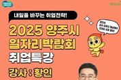 [경기헤드라인=김윤종 기자] 양주시가 오는 11월 18일 오후 1시, 경기섬유종합지원센터 대강당(지하 1층)에서 ‘2025 양주시 일자리박람회 취업특강’을 개최한다. 이번 특강은 ‘내일을 바꾸는 취업전략’을 주제로, 구직자들에게 실질적이고 효과적인 구직 노하우를 제공하기 위해 마련됐다. 강연은 유튜브 채널 ‘황엔터’로 잘 알려진 황인 대표강사(前 한국야쿠르트)가 맡는다. 황 강사는 tvN '유퀴즈온더블럭' ‘취업의 신’ 편, MBC 라디오 ‘굿모닝 FM 장성규입니다’ 특집 등에 출연해 취업 분야에서 공감을 이끌어온 인물이다. 행사 당일 강연은 양주시 공식 유튜브 채널을 통해 생중계되며, 참가 희망자는 10일부터 QR코드를 통해 사전 접수 후 참여할 수 있다. 양주시 관계자는 “이번 특강은 청년층은 물론 중장년 구직자까지 모두에게 도움이 될 수 있는 실전 취업 전략을 다룰 예정”이라며 “많은 시민들이 참여해 취업 경쟁력을 높이는 기회가 되길 바란다”고 전했다.