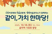 [경기헤드라인=문수철 기자] 가평군은 오는 18일 오전 10시부터 오후 3시까지 음악역 1939 광장에서 주민과 함께하는 축제 ‘2025년 같이, 가치 한마당’을 연다. 이번 행사는 사회적경제기업의 판로 확대와 마을공동체, 경기행복마을관리소의 활동 성과를 알리고 주민 참여를 확대하기 위해 마련됐다. 행사에는 사회적경제기업 5곳, 마을공동체 16곳, 경기행복마을관리소 4곳 등 총 25개 단체가 참여한다. 이날 주민들은 현장에서 직접 사회적경제기업의 제품을 구매할 수 있으며, 공동체별 특색 있는 프로그램을 즐길 수 있다. 주요 프로그램은 △사회적경제기업 생산품 홍보·판매 △공동체와 경기행복마을관리소 활동 전시 및 무료 체험 △합창·뮤지컬 갈라쇼·힐링체조 등 공연 △경품 이벤트 등이 마련돼 있다. 특히 가평마을교육공동체가 제작한 단편영화 상영 등 주민 주도 콘텐츠도 선보일 예정이다. 가평군 관계자는 “‘같이, 가치 한마당’ 축제를 통해 지역사회에서 사회적경제와 공동체 활동이 더욱 확산되기를 기대한다”며 “이번 행사가 지역경제의 활력으로 이어질 수 있도록 주민 여러분의 많은 방문과 성원을 부탁드린다”고 말