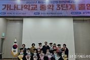 [경기헤드라인=문수철 기자] 화성특례시는 17일 화성시평생학습관에서 ‘2025년 학력인정 성인문해교실 가나다학교 졸업식’을 개최했다. 학력인정 성인문해교실 가나다학교는 사회적·경제적 이유로 학령기 배움의 기회를 놓친 만 18세 이상 비문해·저학력자를 대상으로 문해 교육을 진행하는 프로그램이다. 시는 지난 2020년 12월에 교육부 학력 인정 문해교육 프로그램 운영 기관으로 지정된 이후 학력 인정 성인문해교육을 운영하고 있으며, 올해는 지난 3월 4일부터 12월 11일까지 연 450시간의 교육과정으로 진행됐다. 시는 지난 2022년 초등 3단계 졸업생 15명, 2024년 초등 3단계 졸업생 11명을 배출한 데 이어, 올해는 처음으로 중학 3단계 졸업생 11명을 배출했다. 또한, 중학 1단계는 8명이, 초등 1단계는 9명이 수료했다. 졸업식에서는 학습자 및 가족, 강사들이 참석한 가운데, 중학과정을 마친 졸업생들에 대한 졸업장과 상장 수여, 모범 졸업생 경기도교육감 표창장 수여 등이 진행돼 학습자들의 성과를 함께 축하하고 졸업의 기쁨을 나누는 시간을 가졌다. 학습자 대표는 “가나다학교가 없