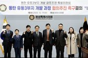 [경기헤드라인=문수철 기자] 화성특례시의회 '동탄 유통3부지 개발 갈등조정 특별위원회'는 17일 의회 대회의실에서 동탄 유통3부지 개발과정 협의추진 촉구결의를 진행했다. 이번 촉구결의에서는 특별위원회가 공식적으로 구성되어 활동 중인 상황에서, 유통3부지 개발과 직결된 주요 안건이 사전 설명이나 협의 없이 도시계획심의위원회에 제출된 데 대한 문제의식을 공유하고, 향후 합리적인 협의 절차의 필요성을 분명히 하기 위해 마련됐다. 이날 촉구결의에서 특별위원회는 ▲도시계획심의위원회 안건 제출 경위에 대한 집행부의 공식적이고 신속한 설명 ▲유통3부지와 관련된 모든 주요 행정 절차에 대해 특별위원회와의 사전 보고 및 협의 이행 ▲의회를 단순한 추인 기구로 인식하는 행정 관행을 개선하고 협치 원칙을 존중할 것을 촉구했다. 특히, 특별위원회가 갈등 해소를 위한 공론의 장으로서 실질적인 기능을 하기 위해, 향후 사업 추진 과정 전반에서 의회와의 긴밀한 소통과 충분한 협의가 반드시 전제되어야 한다는 점을 강조했다. 공동위원장단(김상수‧김영수‧전성균)은 한목소리로 “동탄 유통3부지 개발은 지역 주민의 생활환경과 직결되는