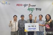 [경기헤드라인=문수철 기자] 가평군 가평읍은 최근 경반리 마을회에서 취약계층 이웃을 돕기 위해 성금 100만 원을 기탁했다고 밝혔다. 김종원 경반리 이장은 “우리 민족의 대명절 추석을 맞아 마을의 취약계층 이웃들이 덜 외롭고 소외 되지 않았으면 하는 마음에서 주민들의 마음을 담아 성금을 기탁한다”고 전했다. 장석조 가평읍장은 “저소득 취약계층과 마을의 이웃들을 생각하는 경반리 마을회의 따뜻함에 진심으로 감사드리며, 더욱 노력하는 가평읍 행정복지센터가 되겠다”고 답했다.
