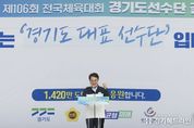 [경기헤드라인=문수철 기자] 김동연 경기도지사가 17일 부산에서 열리는 제106회 전국체육대회에 참가하는 경기도선수단의 4연패를 기원하며 모든 지원을 아끼지 않겠다는 뜻을 밝혔다. 김동연 지사는 30일 오후 수원월드컵경기장 중앙광장에서 열린 전국체육대회 결단식에서 “경기도는 전국체육대회 3연패, 동계 체육대회 22연패를 이뤘다. 경기도 선수단과 경기도 체육인들이 이룬 성과로 이와 같은 영광 뒤에는 1,420만 도민의 한결같은 지원이 있었다”며 “경기도는 1,420만 도민과 함께 여러분들이 오로지 훈련과 경기에 집중할 수 있도록 모든 지원을 아끼지 않겠다”고 말했다. 김 지사는 이어 결단식이 열린 중앙광장을 경기도선수촌 건립예정지라고 소개한 후 “차질 없이 건립하겠다. 우리 선수단뿐만 아니라 후배들도 무한한 가능성을 발휘할 수 있는 대한민국 체육의 요람으로 이곳을 만들겠다”고 구체적 지원계획도 밝혔다. 그러면서 “여러분들이 흘린 땀, 또 좌절의 순간에도 일어섰던 불굴의 용기가 부산 전국 체육대회에서 좋은 실력과 성과로 이어지길 바란다”며 “전국체육대회 4연패를 응원한다”고 격려했다. 이날 행사에는 경