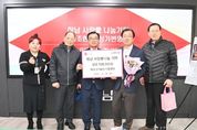 [경기헤드라인=문수철 기자] 하남시는 24일 관내 백조현대B상가번영회에서 ‘하남 사랑愛나눔’성금으로 70만원을 기탁받았다고 밝혔다. 이날 기탁식에는 이현재 하남시장을 비롯하여 이성근 회장, 이강용 감사, 이문섭 총무가 참석했다. 백조현대B상가번영회는 지역사회 나눔 문화 확산과 취약계층 지원을 위해 2018년부터 지난 8년 동안 꾸준히 성금을 기부해왔다. 번영회는 올해에도 관내 어려운 이웃을 돕기 위한 성금을 전달하며 지역사회에 따뜻한 메시지를 전했다. 번영회 이성근 회장은 “성금은 45개 상가 회원들이 한마음으로 모은 정성이며, 따뜻한 마음이 관내 어려운 이웃들에게 잘 전달되길 바란다”고 기탁 소감을 밝혔다. 이현재 하남시장은 “오랜 기간 변함없이 지역사회 발전과 이웃돌봄에 앞장서는 백조현대B상가번영회에 깊은 감사를 전한다”며 “기탁된 성금은 도움이 꼭 필요한 이웃에게 신속하게 전달하겠다”고 말했다. 이날 기탁한 성금은 관내 복지사각지대에 놓인 취약계층 가구에 배분될 예정이다.