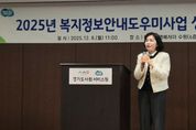 [경기헤드라인=문수철 기자] 황세주 경기도의원(더불어민주당, 경기도의회 보건복지위원회, 비례대표)이 경기도사회서비스원이 추진 중인 ‘복지정보안내도우미’ 사업의 성과를 격려하며, 내년에도 사업이 연속성 있게 추진될 수 있도록 지원하겠다는 뜻을 밝혔다. 지난 8일, 수원시 팔달구 소재 이비스 앰배서더 수원 니스홀에서 '2025년 복지정보안내도우미 성과보고회'가 개최됐다. ‘복지정보안내도우미’ 사업은 경기도사회서비스원이 추진하는 현장 중심 복지 연계사업으로, 2024년 4개 시군에서 시범사업을 성공적으로 마쳤으며 올해는 고양·성남·안산·안성·부천·수원·남양주 등 7개 시군으로 확대해 본격 운영했다. 이번 성과보고회에서는 사업 추진 현황 보고, 참여자의 활동 소감 발표, 그리고 우수 참여자 표창 등이 진행됐다. 이 자리에서 황세주 의원은 “복지정보안내도우미 사업은 올해 9월 기준으로 5,700여 개 시설을 방문하고, 28,000여 명을 상담해 3,300건의 서비스를 연계하는 의미 있는 성과를 만들었다”며, “안성시행정동우회를 포함해 7개 시군에서 참여해 주신 70명의 도우미 여러분께 깊이 감사드린다”고 말했다. &nb