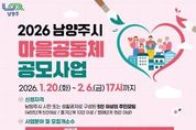 [경기헤드라인=문수철 기자] 남양주시는 1월 20일부터 2월 6일까지 ‘2026년 마을공동체 공모사업’참여 공동체를 공개 모집한다. 이번 공모는 주민의 자발적 참여와 소통을 바탕으로 지역 문제를 해결하고 공동체 문화를 확산하기 위해 마련됐다. 모집 분야는 △나눔활동 △정약용활동 △마을돌봄활동 △자율주제활동 등 4개다. 특히 ‘정약용활동’은 ‘정약용의 도시’라는 시의 정체성을 반영한 분야로, 지난해에 이어 지속 운영된다. 새롭게 신설된 ‘마을돌봄활동’은 사회적 고립 예방을 위한 이웃 간 관계 형성과 서로돌봄 활동을 지원하는 데 중점을 둔다. 사업 참여 공동체는 성장 단계에 따라 △씨앗 △줄기 △열매단계로 구분된다. 씨앗단계는 5인 이상 주민 모임이 신청할 수 있으며, 선정 시 400만 원이 지원된다. 줄기단계는 10인 이상 주민 모임으로 1회 이상 참여 경험이 있어야 하며, 600만 원을 지원한다. 열매단계는 15인 이상 주민 모임으로 2회 이상 참여 경험이 있어야 하며, 800만 원을 지원받게 된다. 신청은 1월 20일부터 2월 6일 오후 5시까지 시청 자치협력과 공동체팀 방문 또는 전자우편을 통해