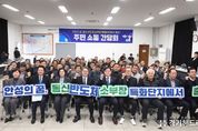 [경기헤드라인=문수철 기자] 김동연 경기도지사가 도가 조성 중인 ‘세계 최대 반도체 메가 클러스터’의 핵심 축 가운데 하나인 안성 동신일반산업단지가 잘 될 수 있도록 최선을 다하겠다고 밝혔다. 김동연 지사는 11월 28일 안성시 금광면사무소에서 안성 동신일반산업단지 관련 주민 소통 간담회를 열고 이같이 말했다. 이날 일정은 19번째 ‘민생경제 현장투어’ 안성시 일정의 하나로 윤종군 국회의원, 김보라 안성시장, 한국산업단지공단, 지역 주민 등이 참석해 소재·부품·장비 특화단지 및 산업단지 조성에 따른 현안과 주민 요구사항을 공유했다. 김동연 지사는 “오전에는 안성시에 현대차 배터리 투자를 유치하고 왔다. 오늘은 안성시 발전의 ‘퀀텀 점프(비약적인 성장)’가 만들어지는 날이다. 여세를 몰아 동신산업특화단지도 좋은 결과가 나오도록 하겠다”며 “대한민국 반도체 산업의 핵심 요람인 소부장 클러스터(동신일반산업단지)를 만드는 데 경기도가 최선을 다하겠다”고 말했다. 김 지사는 이어 “다음 단계로 12월 10일 경기도농정심의회가 있는 것으로 알고 있다”며 “통과시키기 위해 많은 애를 써주셔서 감사하고, 경기도에