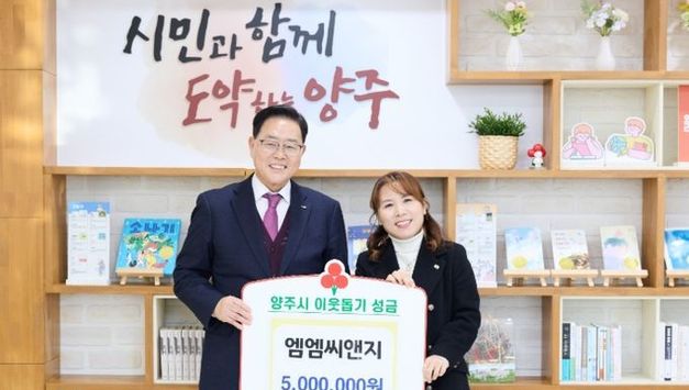 [경기헤드라인=김윤종 기자] 양주시가 31일 농업회사법인 ㈜진영케이지로부터 연말을 맞아 이웃돕기 성금 500만 원을 기탁받았다. 이날 기탁식에는 나완주 대표가 참석해 한 해를 마무리하며 지역사회와 따뜻한 마음을 나눴으며, 기탁된 성금은 경기 사회복지공동모금회를 통해 양주시 취약계층 지원에 사용될 예정이다. 나완주 대표는 “우리 주변의 어려운 소외계층이 따뜻하고 희망찬 새해를 맞는데 보탬이 됐으면 하는 마음으로 성금을 준비했다”며, “앞으로도 우리 이웃과 함께 따뜻한 새해를 보낼 수 있도록 나눔활동을 지속적으로 이어 나갈 것이다”라고 전했다. 시 관계자는 “연말마다 변함없는 나눔으로 지역사회에 온기를 전해주시는 ㈜진영케이지와 나완주 대표께 깊이 감사드린다”며 “기탁해 주신 성금이 어려운 이웃들의 겨울에 따뜻한 힘이 될 수 있도록 하겠다”고 말했다.