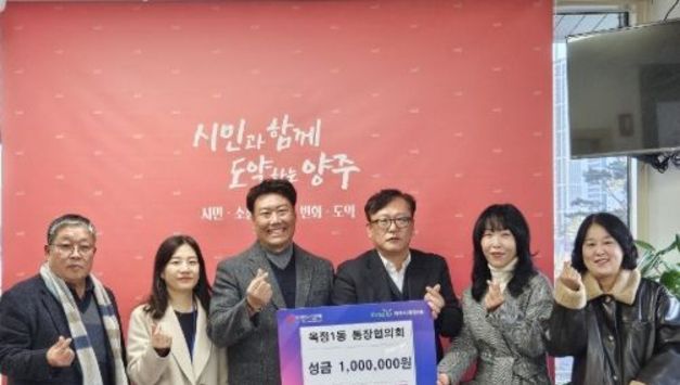 [경기헤드라인=김윤종 기자] 양주시가 31일 ㈜스포플렉스로부터 연말을 맞아 이웃돕기 성금 100만 원을 기탁받았다. 이날 기탁식에는 남병태 대표가 참석했으며, 기탁된 성금은 경기 사회복지공동모금회를 통해 양주시 취약계층 지원에 사용될 예정이다. 남병태 대표는 “연말을 맞아 지역의 어려운 이웃들에게 작은 힘이라도 보태고 싶었다”며 “앞으로도 지역사회와 함께하는 기업으로서 나눔을 이어가고 싶다”고 말했다. 시 관계자는 “㈜스포플렉스의 따뜻한 기부에 감사드리며, 기부금이 꼭 필요한 곳에 잘 전달돼 많은 분들에게 힘이 될 수 있도록 최선을 다하겠다”고 전했다. 한편 광적면에 소재한 ㈜스포플렉스는 헬스기구 제조업체로, 사회적 책임을 실천하며 나눔 활동에 동참하고 있다.