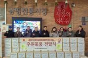 [경기헤드라인=문수철 기자] 광명시장상점가진흥사업협동조합이 설 명절을 앞둔 지난 9일 관내 소외된 이웃을 위한 ‘설맞이 이웃사랑 떡만둣국 세트 나눔 행사’를 개최했다. 이번 나눔은 지난해 12월 시장 내 고객 쉼터에 설치된 크리스마스트리에 후원 금액과 이름을 적은 엽서를 부착하는 ‘나눔 엽서 달기’ 캠페인으로 마련했다. 경기 침체로 어려운 여건 속에서도 시장 상인 63개 점포가 자발적으로 동참하여 총 550만 원의 성금을 모았다. 광명전통시장은 모금액 중 일부를 광명희망나기운동본부에 지정 기탁해 복지 사각지대 지원에 앞장서는 한편, 정성껏 준비한 ‘떡만둣국 선물 세트’ 130박스를 제작해 따뜻한 온정을 나누었다. 준비된 선물 세트는 지역 내 촘촘한 복지망을 통해 골고루 전달했다. ▲광명전통시장 여성회 봉사 대상 어르신 30가구를 시작으로 ▲광명3동 행정복지센터(30박스) ▲광명종합사회복지관(30박스)에 전달했으며, 미래 세대인 아이들을 위해 ▲광명다솜지역아동센터와 ▲어벤저스지역아동센터에도 전해졌다. 광명전통시장의 나눔은 지난 2018년 여성회가 홀몸 어르신 등 125가구에 생필품을 전달