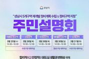 [경기헤드라인=문수철 기자] 성남시는 수정·중원 생활권 재개발 후보지로 선정된 5개 구역의 정비계획 수립 및 정비구역 지정(안)과 관련해 주민 의견을 수렴하고자 오는 3월 25일부터 31일까지 주민설명회를 개최한다. 이번 설명회는 수진2구역, 태평2‧4구역, 산성구역, 단대구역, 상대원1‧3구역을 대상으로 하며, 구역별 정비계획 수립(안)과 향후 추진 절차를 안내하고 주민 의견을 폭넓게 듣기 위해 마련됐다. 설명회 일정은 △3월 25일 오후 2시 태평2‧4구역(수정구청 대회의실)을 시작으로 △3월 26일 오전 10시 산성구역, 같은 날 오후 2시 수진2구역(수정구청 대회의실) △3월 30일 오후 2시 상대원1‧3구역(중원구청 대회의실) △3월 31일 오후 2시 단대구역(수정구청 대회의실) 순으로 진행된다. 설명회에는 해당 구역 토지등소유자와 세입자를 비롯해 재개발 사업에 관심 있는 주민이면 누구나 참여할 수 있다. 시는 지난해 12월 사전 주민설명회를 통해 수렴한 의견을 이번 정비계획(안)에 반영했으며, 이번 설명회를 통해 추가 의견을 폭넓게 수렴할 계획이다. 아울러 주민설명회 이후 정