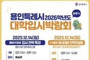 [경기헤드라인=문수철 기자] 용인특례시는 12월 1일 오전 10시부터 오후 5시 30분까지 시청 에이스홀과 종합민원상담창구에서 ‘하반기 2026학년도 대학입시박람회’를 연다고 25일 밝혔다. 이번 박람회는 예비수험생들에게 변화하는 입시 환경에 필요한 정보를 제공하고자 마련됐다. 입시전략 특강과 고3 수험생들의 수능성적을 분석해 학생 개인에 최적화된 대입전략을 지원하기 위한 진학컨설팅이 진행된다. 특강은 시청 에이스홀에서 1부와 2부로 나누어 운영되며, 초등학생부터 고등학생까지 예비수험생과 학부모 등 각 450명이 참여할 수 있다. 1부는 오전 10시~12시까지 최승후 강사가 ‘용인특례시 학생을 위한 의학·약학계열 진학과 학생부 전략’을 주제로 강의한다. 2부는 오후 2시~4시까지 윤윤구 강사가 ‘고교학점제 시대에 맞는 대학입시 트렌드’를 주제로 대입환경 변화에 따른 수시·정시대비 전략을 안내한다. 시청 1층 종합민원상담창구에서는 오후 1시부터 5시 30분까지 ‘정시대비 1:1 진학컨설팅’이 진행된다. 총 120명의 고3 학생과 학부모가 참여할 수 있으며, 수능성적표와 학교생