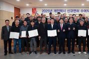 [경기헤드라인=문수철 기자] 용인특례시는 16일 시청 비전홀에서 ‘2025년도 개인택시운송사업 신규 면허증 수여식’을 개최하고, 신규 면허자 35명에게 면허증을 전달했다. 이날 신규 면허 공급은 제5차 택시 총량제에 따른 것으로 2019년 11월 이후 6년 만에 이뤄진 신규 택시 증차다. 시는 지난 8월 1일 개인택시운송사업 신규 면허 모집 공고로 132명의 신청을 받았고, 심사를 거쳐 지난 8일 최종 35명을 신규 면허자로 확정했다. 시는 2025년부터 2028년까지 택시 총 135대를 증차할 계획이다. 시는 증차가 마무리되면 용인지역 전체 택시 수는 2051대로 늘어나 시민들이 택시를 이용하는 데 느끼는 불편이줄어들 것으로 기대하고 있다. 이상일 시장은 “2019년 이후 6년 만에 신규 면허가 발급이 됐는데, 2028년까지 순차적으로 2051대까지 택시가 늘어나면 시민들 입장에서도 매우 반가운 일이라고 생각한다"며 "오늘 발급 받으신 분들을 진심으로 축하드리며, 시민을 위해 앞으로 더욱더 멋진 활동을 해주시길 바란다”고 말했다. 이 시장은 “시민이 늘어날수록 다양한 교통수단이 필요하