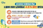 [경기헤드라인=김홍량 기자] 파주시는 2026년도 자동차세를 1월에 한 번에 납부하는 경우 세액공제 혜택을 받을 수 있는 자동차세 연납 신청·납부를 2월 2일까지 접수한다고 밝혔다. 자동차세는 매년 6월과 12월 2회에 걸쳐 부과되는 후납적 성격의 세금이나, 1월에 연세액을 한번에 납부하는 경우 4.5%를 공제받을 수 있어 납세자의 세 부담을 줄일 수 있다. 특히 1월 연납은 연중 가장 높은 공제율이 적용돼 절세 효과가 크다. 자동차세 연납은 1월 외에도 3월, 6월, 9월에도 신청이 가능하지만, 공제율은 각각 연세액의 3.7%, 2.5%, 1.2%로 점차 낮아진다. 또한 연납 후 차량의 소유권이 이전되거나 폐차·말소되는 경우에는 소유 기간을 제외한 잔여기간에 대한 자동차세를 환급받을 수 있다. 자동차세 연납은 신고·납부가 원칙이지만, 파주시는 납세 편의를 위해 지난해 자동차세를 연납한 차량에 대해서는 별도의 신청 없이 연납 납부서를 발송할 예정이다. 다만, 지난해 연납하지 않았거나 차량을 새로 취득한 경우에는 ▲위택스를 통해 신청하거나, 파주시청 세정과 방문 또는 전화를 통해 자동차세 연납 신청을 할 수 있다