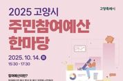 [경기헤드라인=김홍량 기자] 고양특례시는 오는 10월 14일 오후 3시 30분, 일산호수공원 고양꽃전시관(북카페)에서 ‘2025년 고양특례시 주민참여예산 한마당’을 개최한다고 밝혔다. 주민참여예산제는 예산 과정에 시민이 직접 참여함으로써 지역의 주인 의식을 높이고 재정민주주의를 실현하는 중요한 제도다. 시는 지난해 7월부터 올해 6월 말까지 온오프라인을 통해 총 250건의 주민 제안사업을 접수받았다. 이후 소관 부서의 검토와 주민참여예산위원회의 심사를 거쳐 온라인 시민투표를 실시하고 그 결과를 이번 행사에서 공개할 예정이다. 현재 고양시청 누리집(홈페이지)에서는 2026년도 주민참여예산 제안사업에 대한 사전 온라인 시민투표(9.26.~10.8.)가 진행 중이다. 이번 행사에서는 2025년도 주민참여예산으로 반영돼 실제로 실행된 사업 중 우수 실행사례도 함께 소개된다. 주민참여예산의 의미를 시민들과 다시 공유하고, 향후 제도의 발전 방향을 함께 모색하는 자리가 될 예정이다. 행사에서 결정된 제안사업 우선순위는 오는 10월 중 ‘주민참여예산 조정협의회’심의를 거쳐 2026년도 고양시 예산안