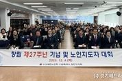 [경기헤드라인=문수철 기자] 대한노인회 수원시장안구지회는 지난 4일 장안구청 대회의실에서 창립 27주년을 기념하는 ‘2025년 노인지도자 대회’를 개최했다. 한 해 동안 노인의 권익 신장과 여가 활동 증진을 위해 헌신한 노인 지도자들의 노고를 격려하고 사기를 진작하기 위해 마련된 이번 행사에는 장안구 관내 경로당 회장, 지회 임원, 내빈 등 200여 명이 참석했으며, 시상식·축하공연·특강·오찬 순으로 진행됐다. 황민웅 대한노인회 수원시장안구지회장은 “이번 대회를 통해 노인 복지 향상과 어르신들의 사회참여 확대를 위한 다양한 사업을 지속적으로 추진하겠다”고 밝혔다. 이일희 장안구청장은 “어르신들이 지역사회의 든든한 버팀목이자 소중한 자산인 만큼 노인 지도자 여러분의 헌신과 노고에 깊이 감사드린다”며 “앞으로도 건강하고 행복한 노후를 지원할 수 있도록 적극 노력하겠다”고 전했다.