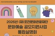 [경기헤드라인=김홍량 기자] 포천문화관광재단은 오는 2월 6일 포천반월아트홀 소극장에서 ‘2026년 문화예술 공모지원사업 통합설명회’를 개최한다. 이번 통합설명회는 지역 예술인과 예술단체를 대상으로 2026년 추진되는 문화예술 공모지원사업 전반을 소개하고, 사업에 대한 이해도를 높여 참여를 활성화하기 위해 마련됐다. 설명회는 2023년부터 매년 개최되고 있으며, 지역에서 활동하는 예술인들과 직접 소통하며 활동 과정에서의 어려움을 공유하고, 지원사업의 수행 방법과 개선 의견을 나누는 자리로 활용되고 있다. 2026년 포천문화관광재단이 추진하는 문화예술 공모지원사업은 총 4개 사업, 약 3억 2천만 원 규모로, 주요 사업은 ‘포천에 도착한 당신의 예술(포·도·당)’, 경기예술지원사업 ‘포천 모든예술31’, 경기 민간문화공간 활성화 사업 ‘포천 모든공간31’, ‘장애인 문화예술 진흥사업’이다. ‘포천에 도착한 당신의 예술(포·도·당)’은 지역 예술인의 지속 가능하고 자생적인 창작활동 기반을 마련하고 시민의 문화예술 향유 기회를 확대하기 위해 2021년부터 추진해 온 사업으로, 전문예술, 청년예술, 생활