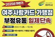 [경기헤드라인=정현수 기자] 여주시는 지역화폐인 여주사랑카드의 부정유통 근절을 위해 지난 11월 26일부터 오는 12월 10일까지 집중 단속에 나선다고 밝혔다. 주요 단속 대상은 ▲ 물품의 판매 또는 용역의 제공 없이 지역화폐를 수취·환전하는 행위 ▲ 실제 매출금액 이상의 거래를 통하여 지역화폐를 수취·환전하는 행위 ▲ 가맹점이 등록 제한업종을 영위하는 경우 ▲결제를 거부하거나 다른 결제 수단에 비해 불리하게 대우하는 행위 ▲기타 단속이 필요성이 있다고 인정되는 경우 등이다. 이번 일제 단속은 가맹점 데이터 목록을 참고 및 주민 신고 등을 토대로 의심되는 현장을 방문해 확인하는 방식으로 진행된다. 여주시 일자리경제과 관계자는 “지역화폐 제도의 지속가능성, 신뢰성을 확보하고 지역 자금의 역외유출 방지를 위해서는 여주사랑카드 사용자와 가맹점주 모두 함께 힘을 합쳐야 건전한 유통 문화를 만들어갈 수 있다”협조를 당부했다. 부정유통 적발 시 여주사랑카드 가맹점 등록취소, 관계 법령에 따라 최대 2,000만원 이하의 과태료가 부과될 수 있으며, 위반행위 조사를 거부·방해 또는 기피하는 경우에도 최대 500만