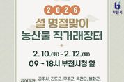 [경기헤드라인=문수철 기자] 부천시는 설 명절을 앞두고 2월 10일부터 12일까지 시청 정문 앞에서 ‘2026년 설 명절맞이 농산물 직거래장터’를 연다. 이번 직거래장터에는 공주시, 무주군, 옥천군, 진도군, 봉화군 등 자매결연 도시를 포함해 서산시, 안동시, 부천 지역 전통시장(한신시장, 제일시장), 팔도향우회(강원·호남)가 함께한다. 각 지역 참가 단체는 직접 재배한 농수산물과 특산품을 준비해, 시민들이 설 차례상과 선물용으로 활용할 수 있도록 다양한 성수품을 선보일 예정이다. 직거래장터에서는 사과, 알밤, 버섯 등 신선 농산물과 미역, 다시마, 김, 멸치, 젓갈 등 수산 가공품, 된장, 고추장, 참기름, 한과 등 지역 특산품이 판매된다. 판매 품목은 품질이 우수한 우리 농산물로, 시중가보다 평균 10% 이상 저렴하게 제공된다. 이수미 부천시 도시농업과장은 “이번 직거래장터는 설 명절을 앞두고 시민들이 전국의 다양한 농특산물을 한자리에서 만날 수 있도록 마련한 자리”라며 “가격 부담은 줄이고 명절의 따뜻한 정취는 더할 수 있도록 준비한 만큼, 많은 시민이 함께 즐기길 바란다”고 말했다.