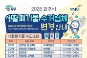[경기헤드라인=김홍량 기자] 파주시는 2026년 1월 1일부터 관내 생활폐기물(쓰레기) 수집·운반 대행업체가 변경됨에 따라, 시민에게 정확한 정보를 안내하고 현장 운영이 원활히 정착될 수 있도록 홍보와 안내를 강화하고 있다고 밝혔다. 이번 대행업체 변경으로 지역별 담당 업체가 달라졌으며, 특히 문산읍의 경우 세부 지역(리 단위)에 따라 담당 업체가 서로 다를 수 있어 시민들의 각별한 주의가 필요하다. 변경된 담당 업체 정보는 파주시청 누리집에서 확인하거나, 자원순환과 청소행정팀 및 민원전화상담실(콜센터)로 문의하면 안내받을 수 있다. 파주시는 시민 혼선을 최소화하기 위해 변경 사항을 지속적으로 홍보하는 한편, 대행업체와 협력해 현장 안내를 강화하고 주민 문의에 신속히 대응해 나갈 계획이다. 심재우 자원순환과장은 “대행업체 변경 초기에는 일시적인 혼선이 발생할 수 있다”라며 “현장 점검을 강화해 수거 지연 등 문제를 신속히 해소하고 청소 행정이 조기에 안정될 수 있도록 노력하겠다”라고 밝혔다.