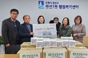 [경기헤드라인=문수철 기자] 수원시 권선구 금곡동은 지난 28일 ㈜케이티스포츠로부터 김장 나눔 행사를 위한 후원금 100만원을 전달받았다고 밝혔다. 이번에 기부된 성금은 김치를 구입하는 데에 사용됐으며, 구입한 김장김치는 지역 내 취약계층 가구에 직접 전달됐다. 이호식 대표이사는 “이번 기부를 통해 지역의 어려운 이웃들에게 실질적인 도움이 되길 바란다며 앞으로도 지역사회와 함께하는 다양한 나눔 활동을 지속적으로 이어가겠다”라고 말했다. 장성임 금곡동장은 “㈜케이티스포츠에서 김장 나눔을 위해 후원금을 전달해 주셔서 감사드린다며, 이번 후원으로 마련된 김장김치가 취약계층의 겨울나기에 큰 도움이 될 것”이라며 “앞으로도 주민들이 따뜻한 겨울을 보낼 수 있도록 지원을 이어가겠다”라고 전했다.