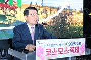 [경기헤드라인=문수철 기자] 구리시는 지난 9월 26일부터 28일까지 3일간 구리한강시민공원 일원에서 열린 '2025 구리 코스모스 축제'가 약 36만 명의 관람객이 찾은 가운데 성황리에 막을 내렸다고 밝혔다. 올해 축제는 ‘코스모스 꽃길 따라, 가을로 구리로’라는 주제로 개최됐으며, 비교적 이른 시기 개최로 개화 상태에 대한 우려가 있었으나 첫째 날과 둘째 날 맑고 따뜻한 날씨 속에 만개한 코스모스가 장관을 이루며 시민과 관광객들에게 가을의 정취를 선사했다. 특히 구리시 벌말 지역의 전통 민속놀이인 ‘구리 벌말 다리밟기’가 원형 그대로 재현되어 큰 관심과 호응을 얻었으며, 단순한 체험을 넘어 지역의 역사와 문화를 알리는 의미 있는 시간이 됐다. 행사장 내를 순환한 코스모스 투어 기차는 2개 노선으로 운영돼 가족 단위 방문객들에게 큰 인기를 끌었다. 꽃밭 사이를 달리며 즐기는 이색적인 체험은 남녀노소 모두에게 특별한 추억을 선사했다. 또한 7080 추억의 교실, 옛 교복 착용 체험, 인생네컷 포토 존 등 다양한 체험 행사가 세대별 공감을 끌어내며 축제 현장을 더욱 풍성하게 만들었다. 잔