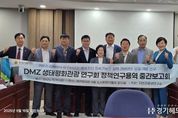 [경기헤드라인=문수철 기자] 경기도의회 의원연구단체인 DMZ생태평화관광 연구회는 지난 19일 경기도의회 도시환경위원회 회의실에서 '커먼즈 관점에서 본 DMZ와 배후지의 지속가능한 협력 거버넌스 모델 개발 연구' 용역 중간보고회를 개최했다. 이날 보고회에는 오준환 회장을 비롯해 윤종영 의원, 김호겸 의원, 서광범 의원, 윤태길 의원, 김옥순 의원, 방성환 의원, 김창식 의원, 이채명 의원 등이 참석해 성황을 이뤘다. 오준환 회장은 “연천군과 고양시에서 두 차례에 걸쳐 FGI를 진행해본 결과 주민들의 반응이 긍정적이었다”면서도, “더 많은 표본을 확보해 결과의 신뢰성을 높이는 방안이 필요하다”고 강조했다. 이어 오 회장은 “이번 연구가 고양·파주·김포·연천·포천 등 DMZ 배후지를 중심으로 지속가능한 공동자산 관리체계와 거버넌스 방향을 제시하는 의미 있는 성과로 이어지길 바란다”며, “지역사회 기반의 관광 개발을 통해 배후지 경제 활성화, 고용 창출, 그리고 지역경제의 다변화에 기여하는 계기가 되길 기대한다”고 밝혔다. 용역수행기관인 협동조합 자연과공생연구소 윤여창 이사장은 중간보고에서 “착수보고 이후 연천군과 고양시에서 두 차례 진행된 FGI 결과를 Q 방법론