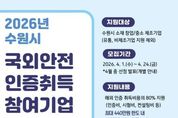[경기헤드라인=문수철 기자] 수원특례시가 관내 중소기업이 국외 안전인증 취득하는 데 소요되는 비용을 지원한다. 수원시는 24일까지 ‘2026년 국외 규격인증 취득 지원사업’에 참가할 창업·중소·제조기업 8개 업체를 모집한다. 인증비·시험비·컨설팅비 등 안전인증 취득에 필요한 총비용의 80%를 실비로 지원한다. 기업당 최대 2개 제품의 인증 취득을 지원하고, 지원 한도는 기업당 440만 원이다. 지원 분야는 미국 안전인증(UL·FCC·FDA), 유럽 안전인증(CE) 등 436개 규격이다. 제품안전인증이 아닌 아이에스오(ISO) 인증은 제외된다. 수원시 관계자는 “중소제조기업에게는 국외 안전인증을 취득하는 과정이 수출 장벽처럼 느껴질 정도로 쉽지 않다”며 “기업이 교역 대상국의 안전 규제에 선제적으로 대응할 수 있도록, 국외 안전인증 취득을 지원하겠다”고 말했다.