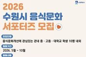 [경기헤드라인=문수철 기자] 수원특례시는 ‘2026년 음식문화 서포터즈’로 활동할 중·고등·대학생을 4월 17일까지 모집한다. 음식문화 서포터즈는 단순 홍보를 넘어 시민이 참여하고 실천하는 활동으로 건강한 음식문화를 확산하는 역할을 맡는다. 온라인과 현장을 연계해 다양한 방식으로 시민과 소통하는 활동을 한다. ▲음식문화 개선, 수원음식축제 관련 온라인 홍보 콘텐츠 제작 ▲사회관계망서비스 공유 ▲수원음식축제 운영 지원 등 활동을 한다. 참여자는 활동 기간에 다양한 현장 경험을 쌓고 지역 축제 운영에도 참여한다. 음식문화 개선에 관심 있는 관내 중·고등·대학교 학생이 신청할 수 있다. 10명 내외를 선발한다. 선발된 서포터즈는 5월부터 10월까지 활동한다. 참여를 희망하는 학생은 수원시 홈페이지 ‘공고/고시/입법예고’ 게시판에서 신청서를 내려받아 작성한 후 전자우편으로 제출하면 된다. 자세한 사항은 공고문에서 확인할 수 있다. 활동자에게는 위촉장과 활동 인증서를 발급하고, 우수 활동자에게는 수원특례시장 표창을 수여한다. 자원봉사 시간도 부여할 예정이다. 수원시 관계자는 “서포터