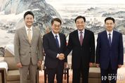 [경기헤드라인=문수철 기자] 김동연 경기도지사는 26일 중국에서의 마지막 공식 일정으로 장쑤(江蘇)성 신창싱(信長星) 당서기와 만나 경제와 기후 등 분야별 협력을 강화하기로 했다. 오늘 행사는 양측 친선결연 1주년을 맞아 마련됐다. 앞서 경기도와 장쑤성은 지난해 6월 수원 도담소에서 친선결연 양해각서(MOU)를 체결한 바 있다. 먼저 인사말을 한 신창싱 당서기는 “시진핑 주석과 이재명 대통령의 정상통화에서 양국이 수교초심으로 돌아가 전략적 협력동반자 관계를 더 높은 수준으로 발전시키기로 했다”면서 “양국 정상들이 방향 정확히 잡아주셨으니 장쑤성과 경기도의 교류를 업그레이드하자”고 말했다. 이미 김동연 지사는 이번 중국 출장 의미를 “이재명 국민주권정부가 새로 들어서 정상화되고 있는 외교를 경기도가 공공외교로 뒷받침해주는 데 가장 큰 의미가 있다”고 밝힌바 있다. 김동연 지사는 “한국과 중국은 오랜 친구이지만 최근 몇 년동안 다소 힘든 시기를 보냈다. 하지만 이재명 대통령이 취임하면서 바람직한 한중관계의 장이 열릴 기반이 마련됐다”면서 신 당서기의 제안에 화답했다. 그러곤 한걸음 더 나아가 “두 분