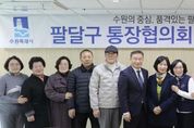 [경기헤드라인=문수철 기자] 수원시 팔달구 통장협의회는 지난 20일, 팔달구청 상황실에서 2026년 2월 통장협의회 정기회의를 개최했다. 이번 회의는 팔달구청장과 각 동 통장협의회장이 한자리에 모여 앞으로의 구정 운영 방향을 공유하고, 지역 현안 사항에 대한 긴밀한 협조 체계를 구축하기 위해 마련됐다. 회의에서는 ▲동별 주요 현안 점검 ▲구정 발전 방안 ▲통장 자녀 장학금 선발 ▲봄철 산불 예방 및 해빙기 안전 점검 ▲주민과 행정을 잇는 소통 역할 강화 방안 등에 대해 폭넓은 의견을 나눴다. 유지현 팔달구 통장협의회장은 “행정의 최일선에서 주민들을 위해 봉사하는 통장님들의 노고에 감사드린다”며, “우리 통장협의회가 행정과 주민을 잇는 튼튼한 가교가 되어, 더 살기 좋은 팔달구를 만드는 데 중추적인 역할을 해나가자”라고 독려했다. 황규돈 팔달구청장은 “주민과 가장 가까이에서 소통에 힘써주시는 통장님들의 노고에 깊이 감사드린다”며, “앞으로도 현장의 목소리를 구청이 즉각 반영하고, 통장협의회와 긴밀히 협력해 살기 좋은 팔달구를 만들어 나가겠다”고 말했다.