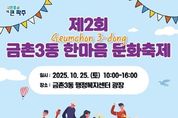 [경기헤드라인=김홍량 기자] 파주시 금촌3동 ‘제2회 한마음 문화축제’가 오는 25일 10시, 금촌3동 행정복지센터 광장에서 개최된다. 금촌3동 주민자치회가 주최하는 이번 축제는 주민들이 바쁜 일상에서 벗어나 지친 마음을 달래고 서로 소통하는 화합의 장을 만들기 위해 마련됐으며, 발표회를 통해 금촌3동 주민자치센터 수강생들이 그동안 연습해 온 성과도 아낌없이 선보일 예정이다. 행사는 ▲주민자치센터 수강생들의 성과 발표회 ▲주민이 직접 꾸미는 한마음 예술제 ▲벼룩시장(플리마켓) ▲공예, 원예, 친환경 전기자전거 등의 다양한 체험활동 ▲먹거리 나눔 등 가을날의 다채로운 즐길 거리를 제공할 계획이다. 남인우 금촌3동 주민자치회장은 “금촌3동 한마음 문화축제가 제2회를 맞이해, 올해도 축제를 통해 주민들을 만날 수 있어 기쁘다”라며 “축적된 경험을 통해 더 풍성하고 주민들이 즐길 수 있는 문화축제로 자리매김할 수 있기를 기대한다”라고 전했다.